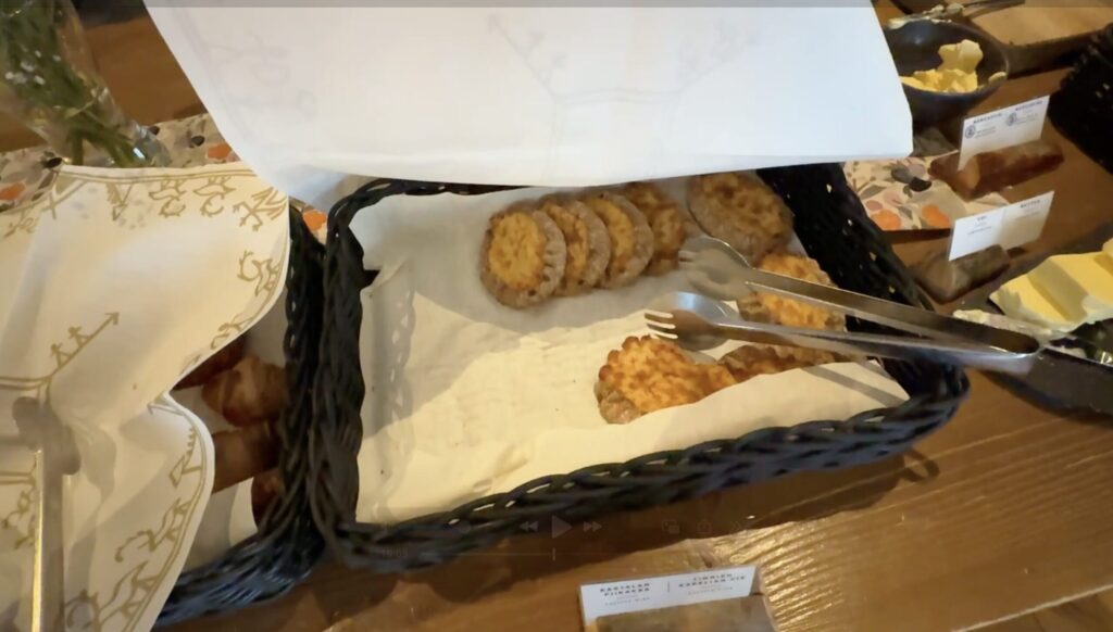 パンは食パンや、クロワッサン、カレリアンピーラッカというフィンランドの伝統的なパイなどがありました。