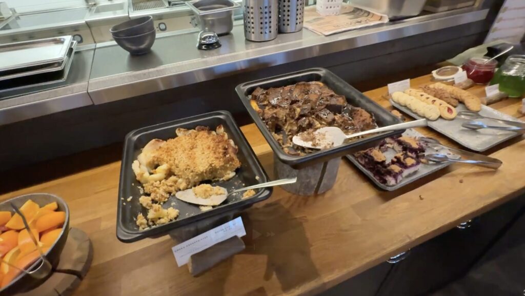 デザートはフルーツが数種類、梨やブルーベリーを使ったケーキなども用意されています。