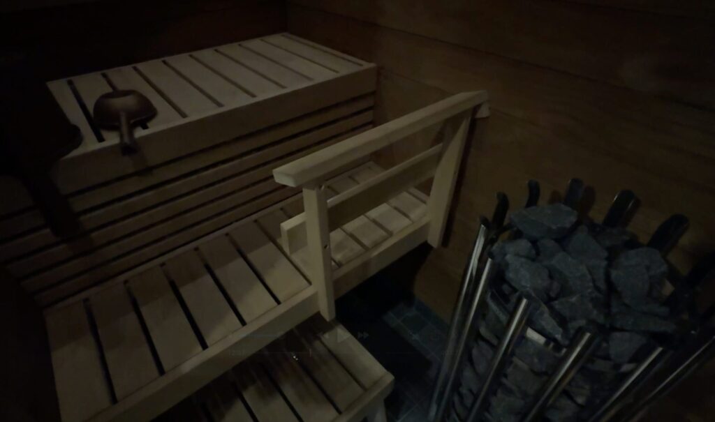 一度に2~3人入れる広さで、ロウリュもできるようになっており、手軽に本格的なサウナが楽しめます。さすがフィンランド!