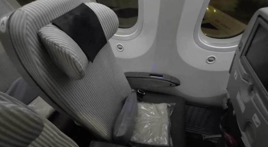 座席には枕と毛布も置いてあったので、機内でも休めそうですね。