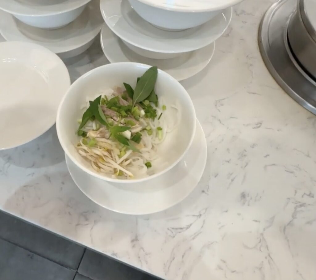 フォーは麺があり、そこにスープと好きな具材をトッピングして食べます。
