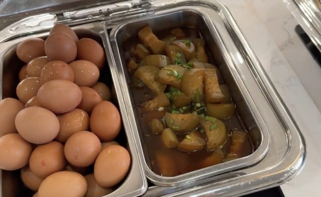 他にも温野菜と鳥肉料理、ジャガイモと春雨、ゆで卵と大根の煮込み、チャーハン、お粥にトッピングする具材などがありました。