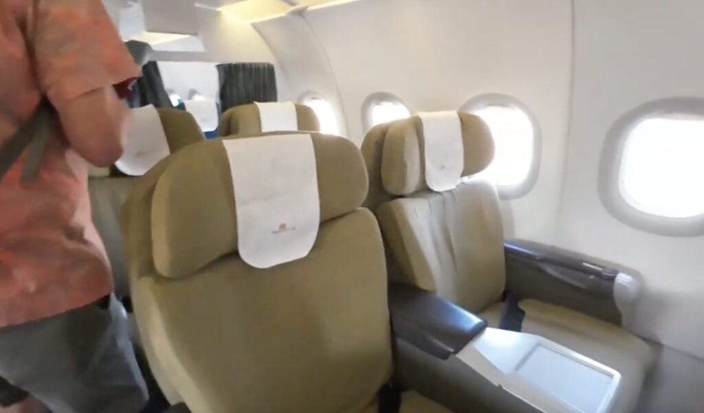 今回の飛行機は結構小型でビジネスの席は8席のみでした。