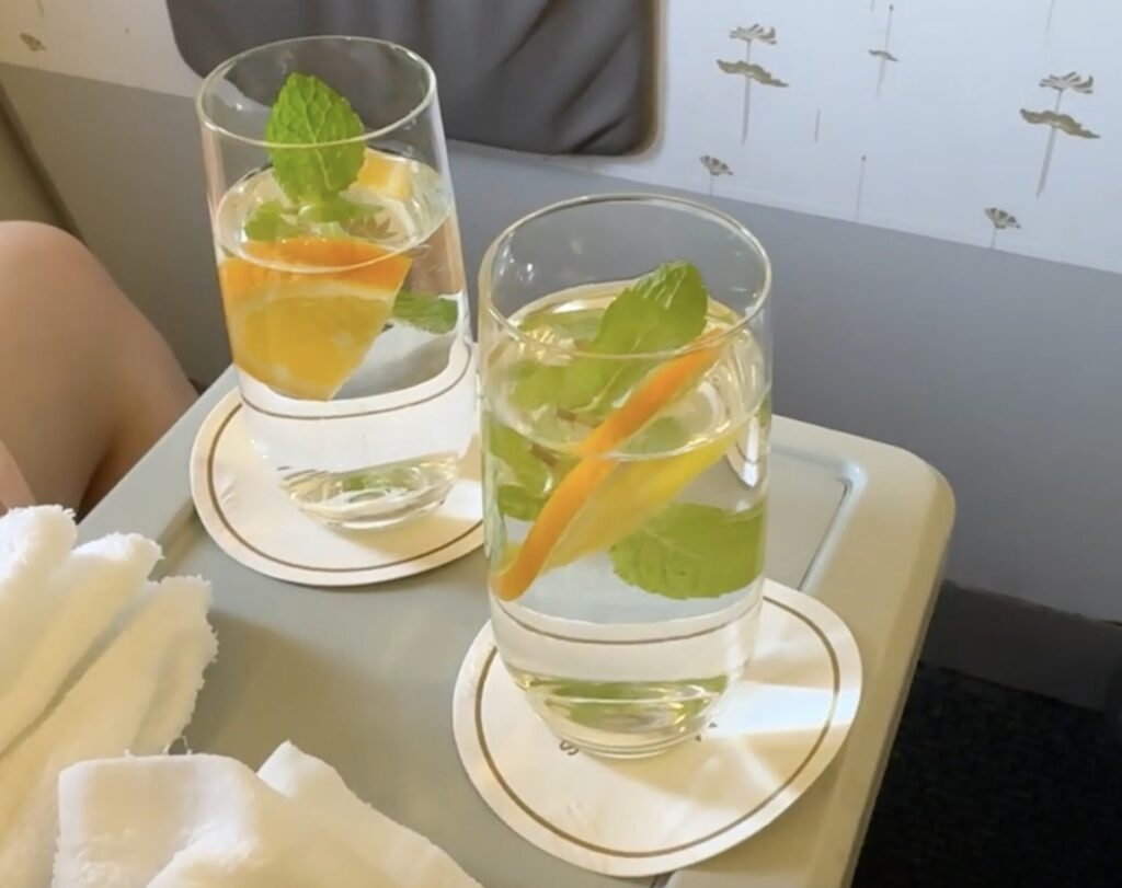 ウエルカムドリンクで、デトックスウォーターか、オレンジジュースを選ぶことができました。
