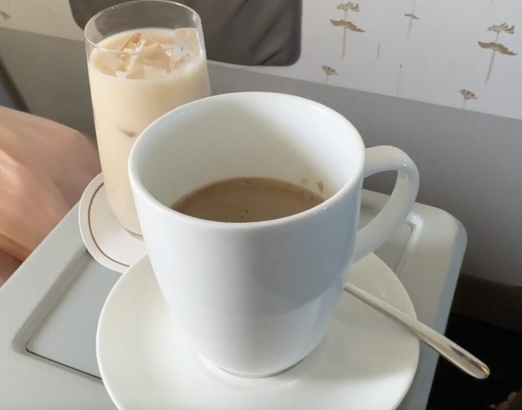 フライト中、注文したコーヒーとミルクティーが来ました。