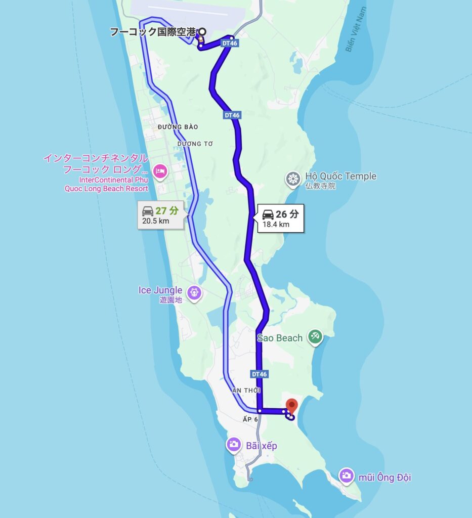 【ベトナム フーコック島②】でご紹介した収容所やローカルフード店もホテル付近にあり、Grabで5分ほどでした。