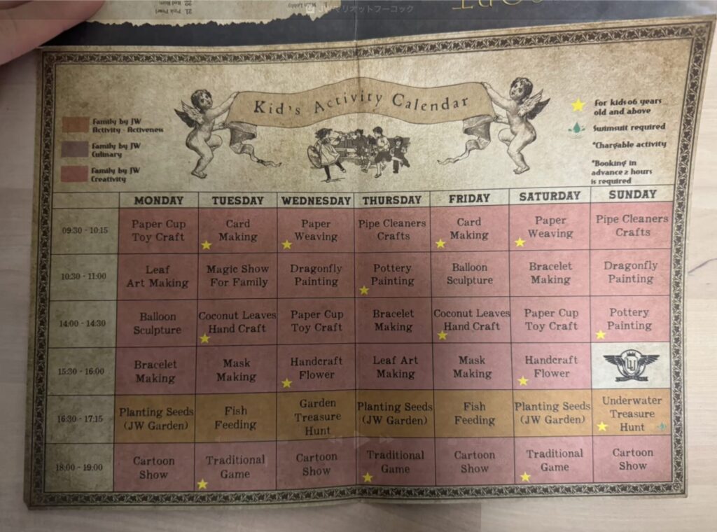 大人も楽しめるアクティビティも複数あり、曜日や時間ごとに実施している内容が異なります。