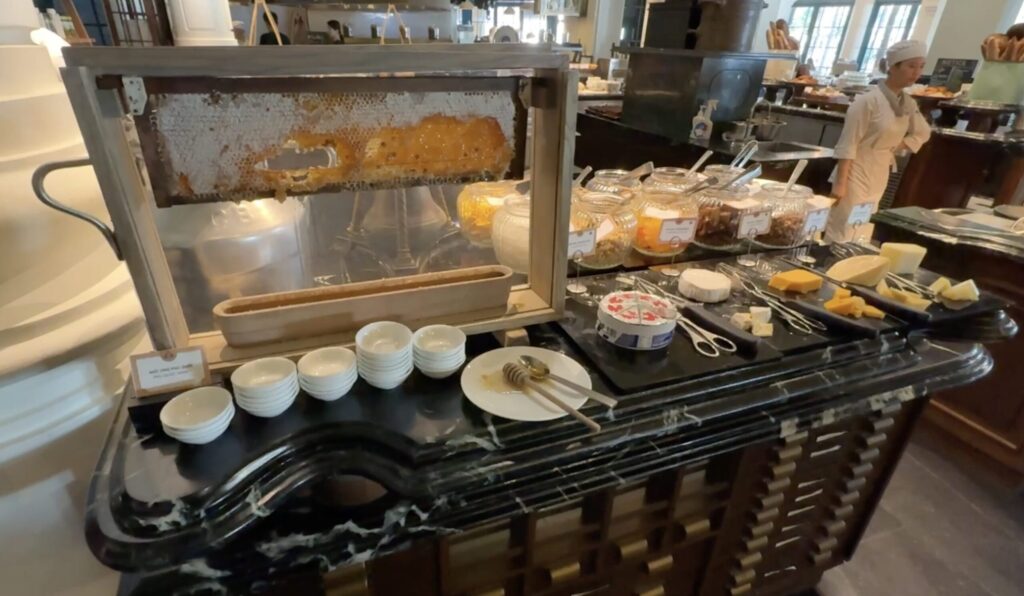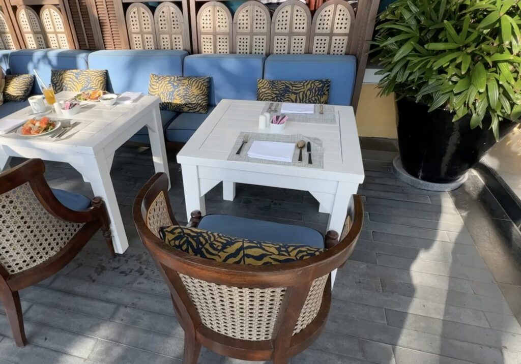 朝食会場はビーチ沿いにあり、南国リゾートらしく海を見ながら食べることができます。