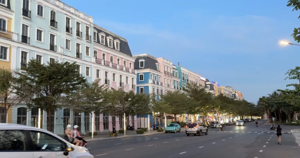 ホテル近くの商業エリアはカラフルな建物になっており、素敵でした。