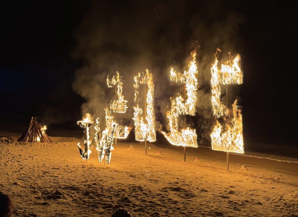 ビーチには2025年のモニュメントがあり、年越しのタイミングで、火がつけられます。
