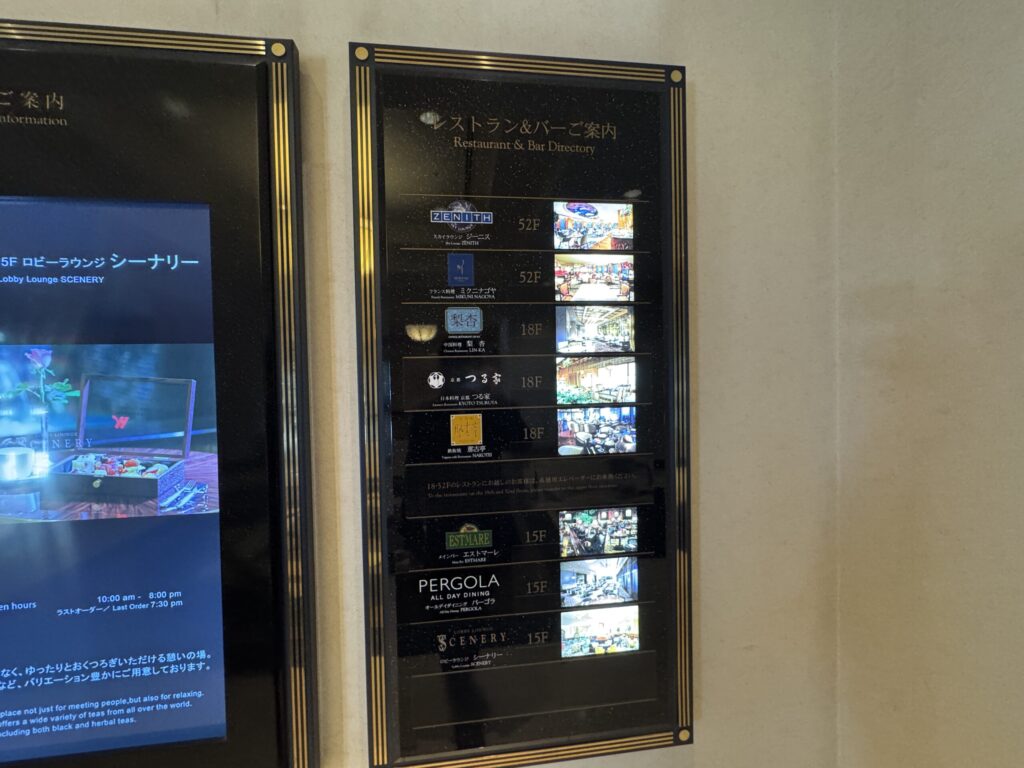 15階にはフロントやレストラン・ラウンジなどがあります。