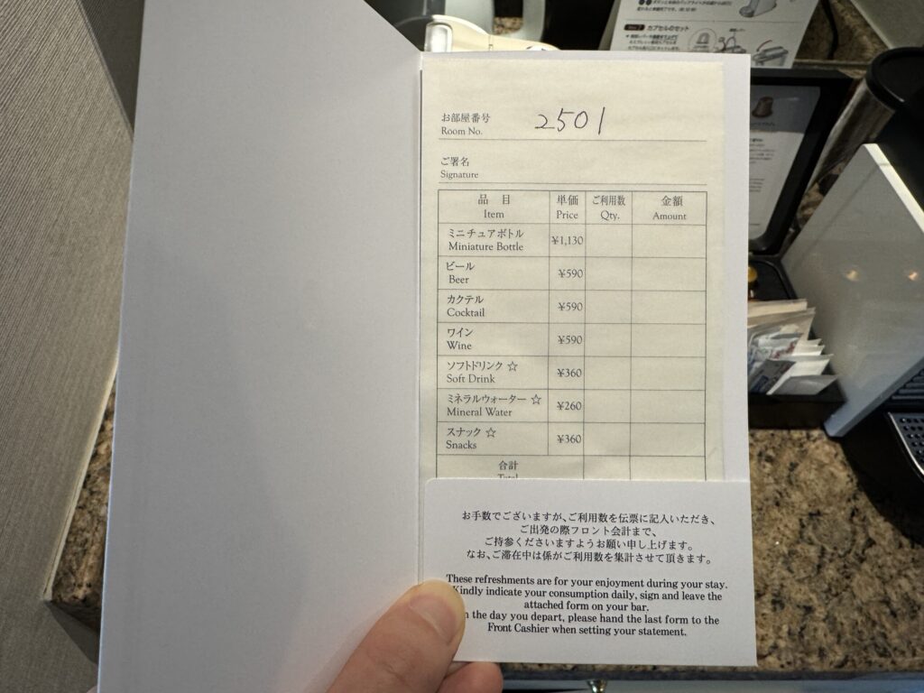 ・部屋にある「ドリンク無料」or「1,000ポイント」の進呈