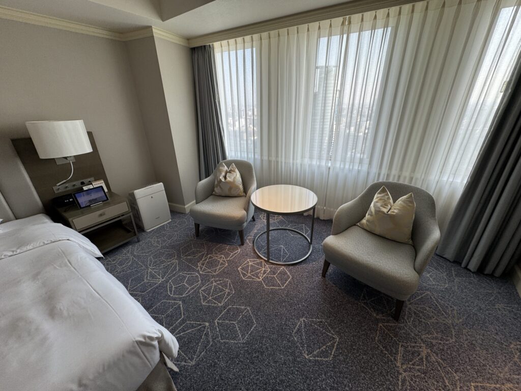 窓のそばにはソファーが2脚あるので、同行者ともテーブルで食事ができそうです。