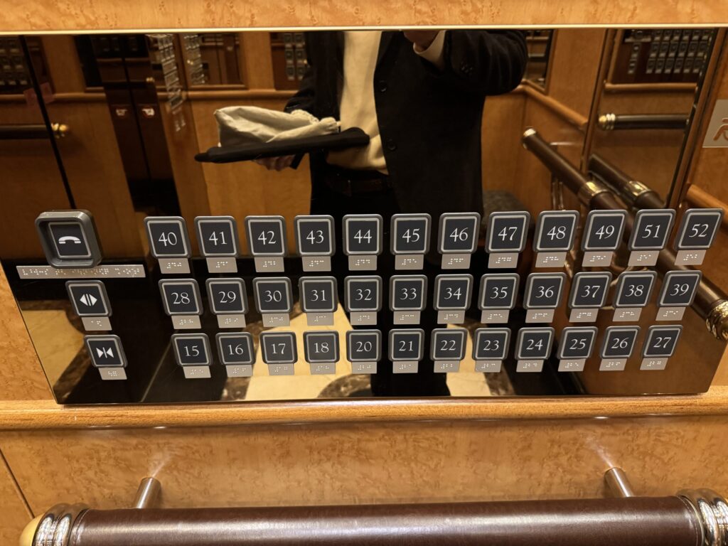 エレベーターの階数を見ると、フロアが多いのがよくわかりますね。