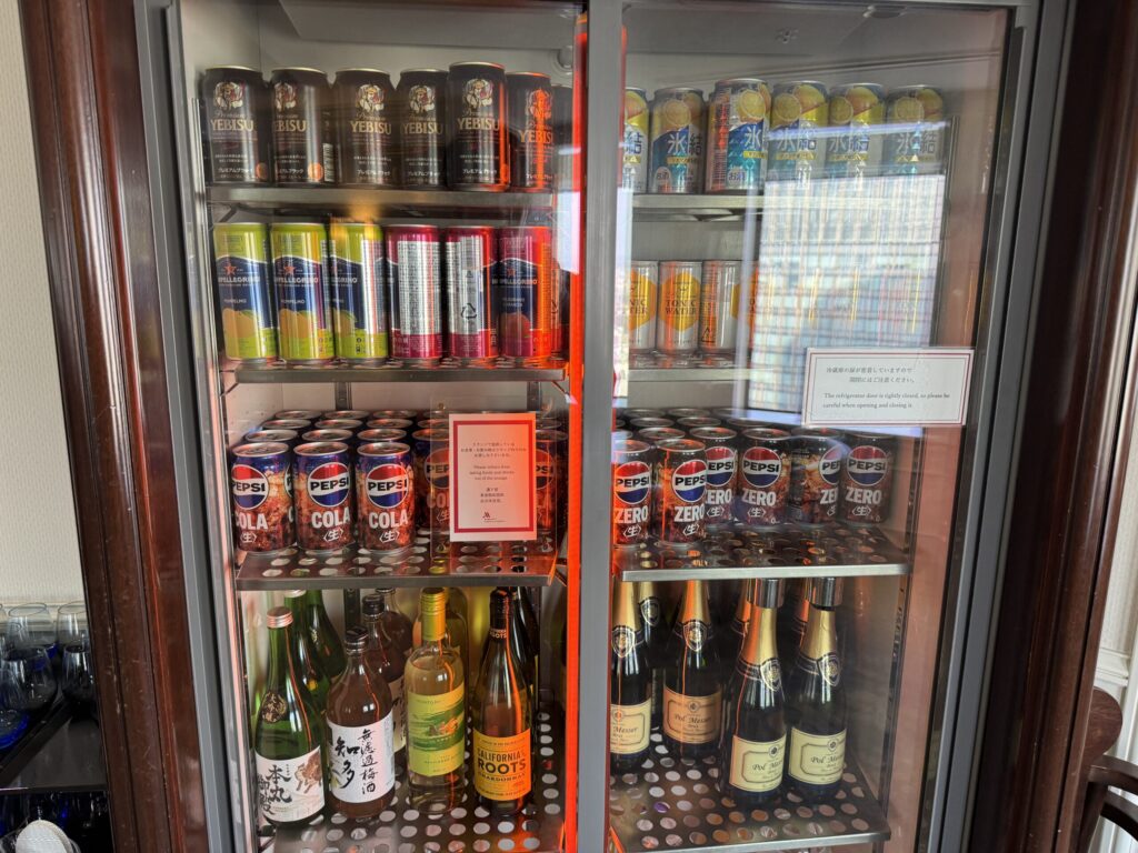 引き出しにはグラスや冷蔵庫があり、有料のドリンクが入っています。