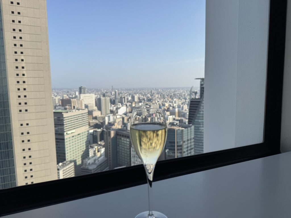 スパークリングワインを片手に、外の景色をみながらゆっくり過ごすことができました。