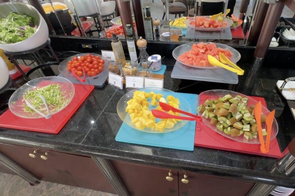 サラダとグレープフルーツ、パイナップル、キウイなどのフルーツもありました。