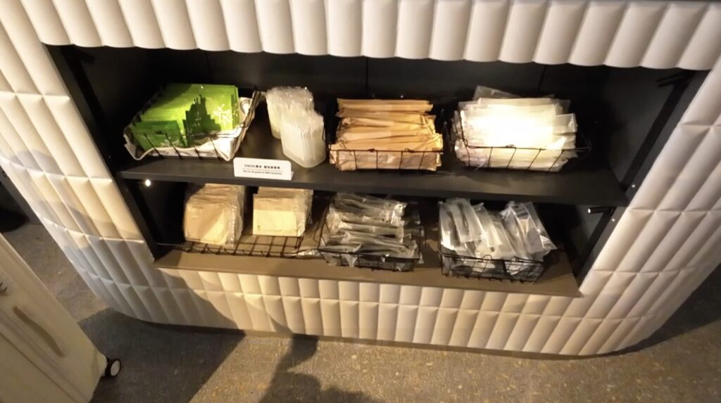 アメニティーは自身で必要なものを取っていくスタイルでした。