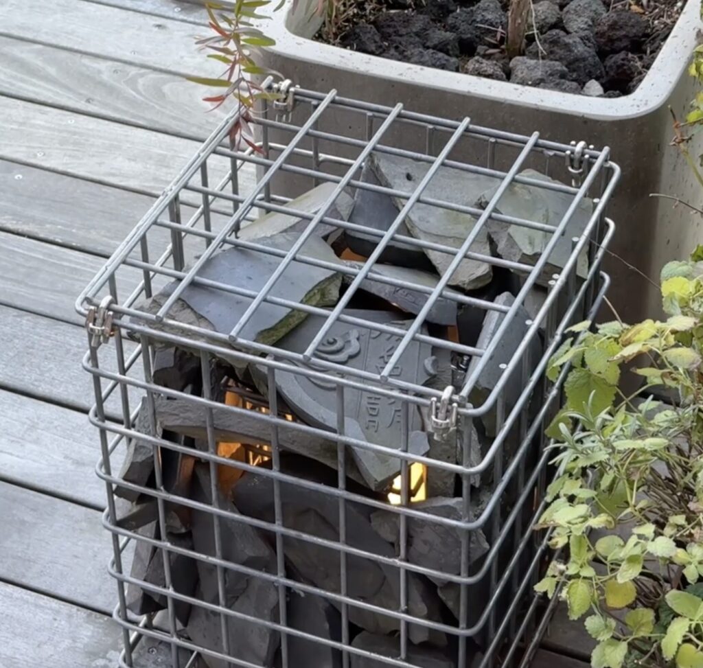 熊本地震で落下した、熊本城の瓦を再利用したライトもありました。