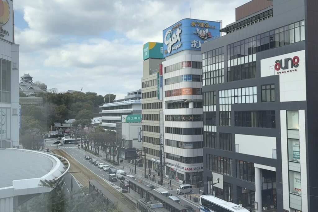 窓からは、頑張れば奥に熊本城を見ることができました。