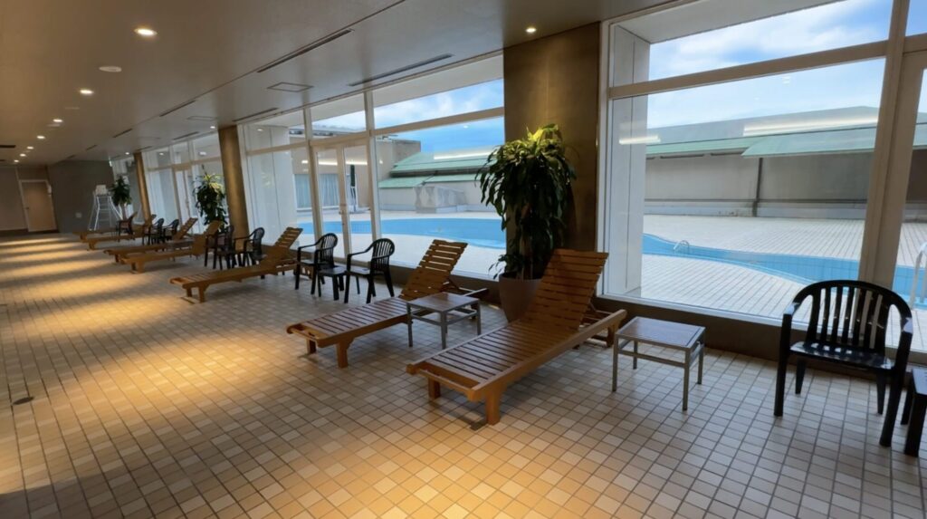 プール脇にはゆっくりできる席もありました。夏は外のプールも利用できるみたいです。
