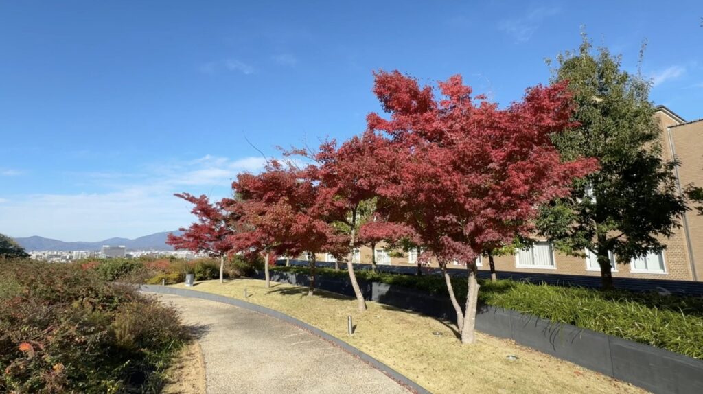 屋上庭園もあり、結婚式の写真撮影もしているようです。私が訪れたのは、紅葉の時期から少し遅れていましたが、まだ紅葉を見ることができました。