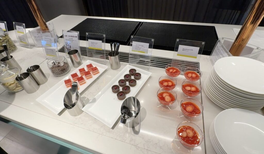 いちごのジュレ、チョコレートケーキ、ラズベリーケーキなどがありました。どれも美味しそうですね。