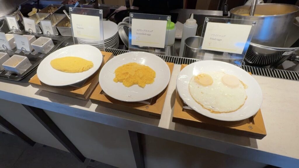 卵料理は、目玉焼き、スクランブルエッグ、オムレツから選ぶことができ、中に入れる具材も色々選べました。