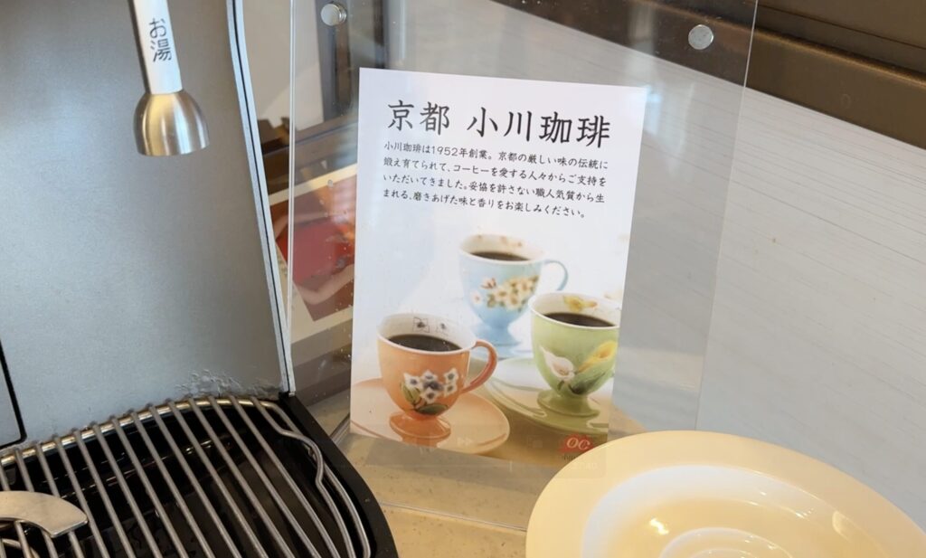珈琲は京都の小川珈琲を使用しているようで、種類もカフェラテ、カプチーノなどがありました。