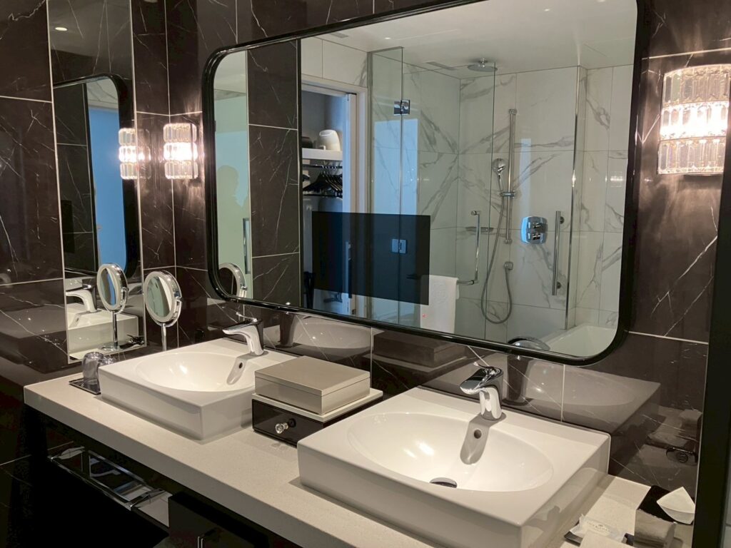 鏡にテレビも埋め込まれているので、ゆっくり準備ができそうですね。