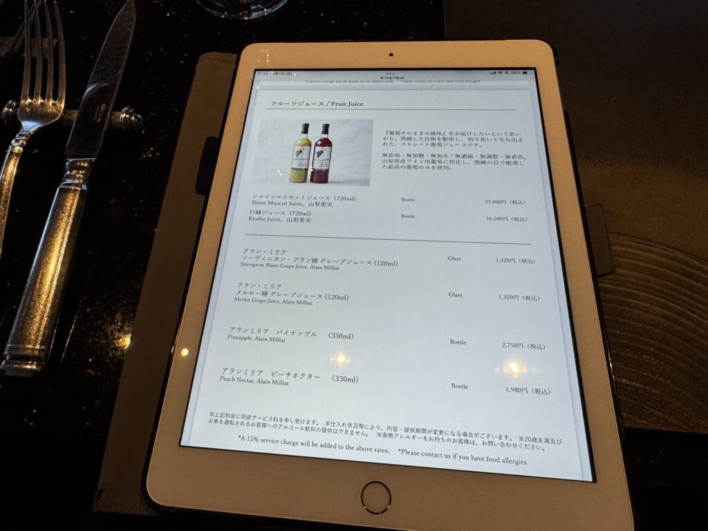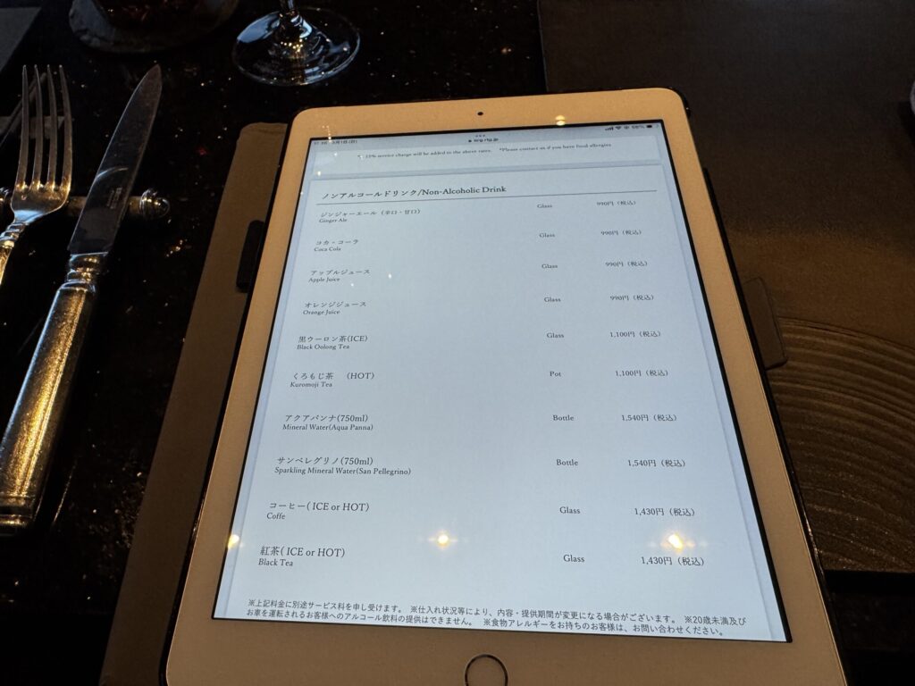 ドリンクはタブレットで選べました。