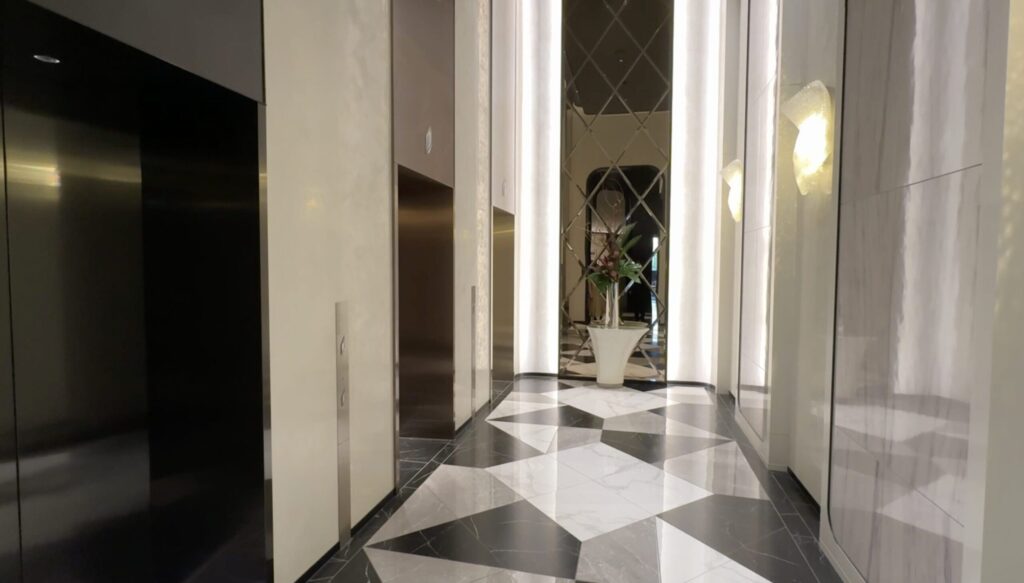 エレベーターホールも白基調で、高級感がありますね。