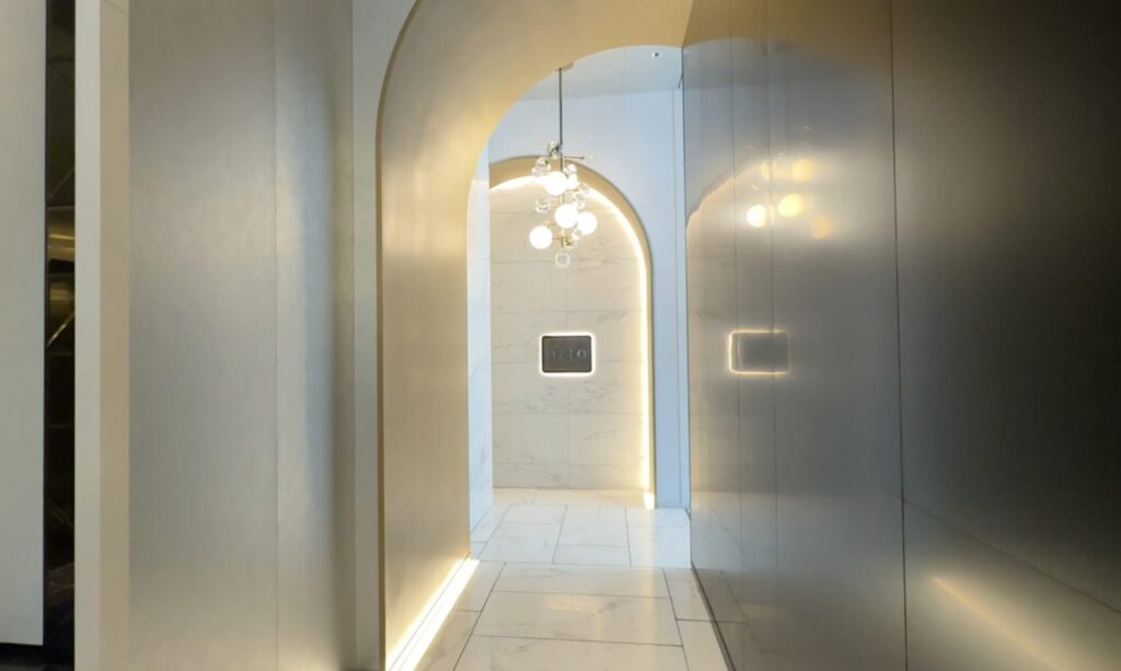 スパは専用エレベーターがあり、バスローブで向かえます。