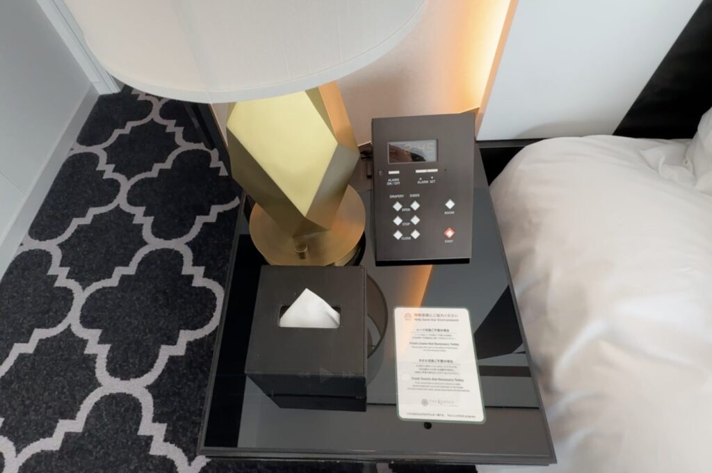 ベッド脇には、窓のカーテンや部屋の電気を操作できるスイッチがありました。