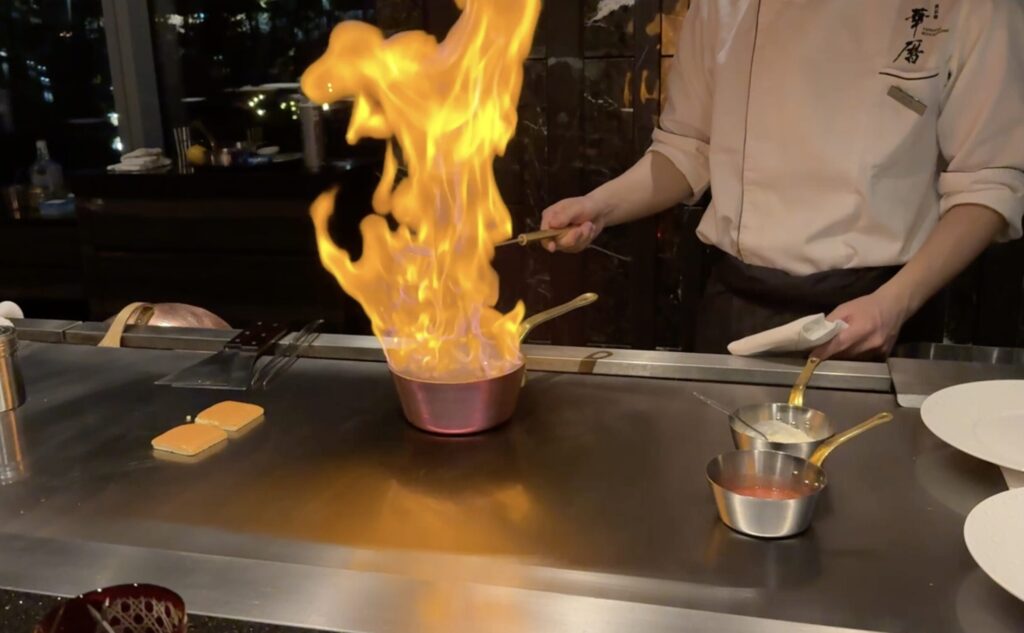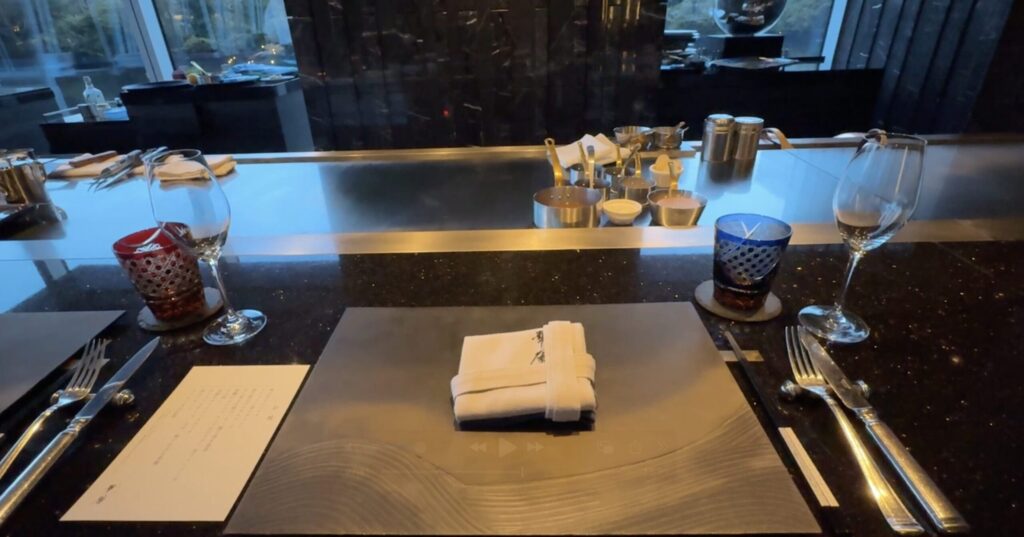 今回は夕食をホテル内にある鉄板焼き「華歴」、朝食をインルームダイニングでいただきます。