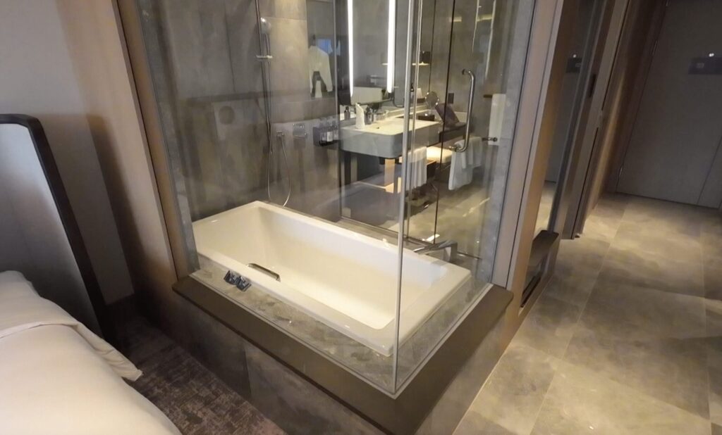 バスタブのあるエリアは、ガラス張りでかっこいいです。