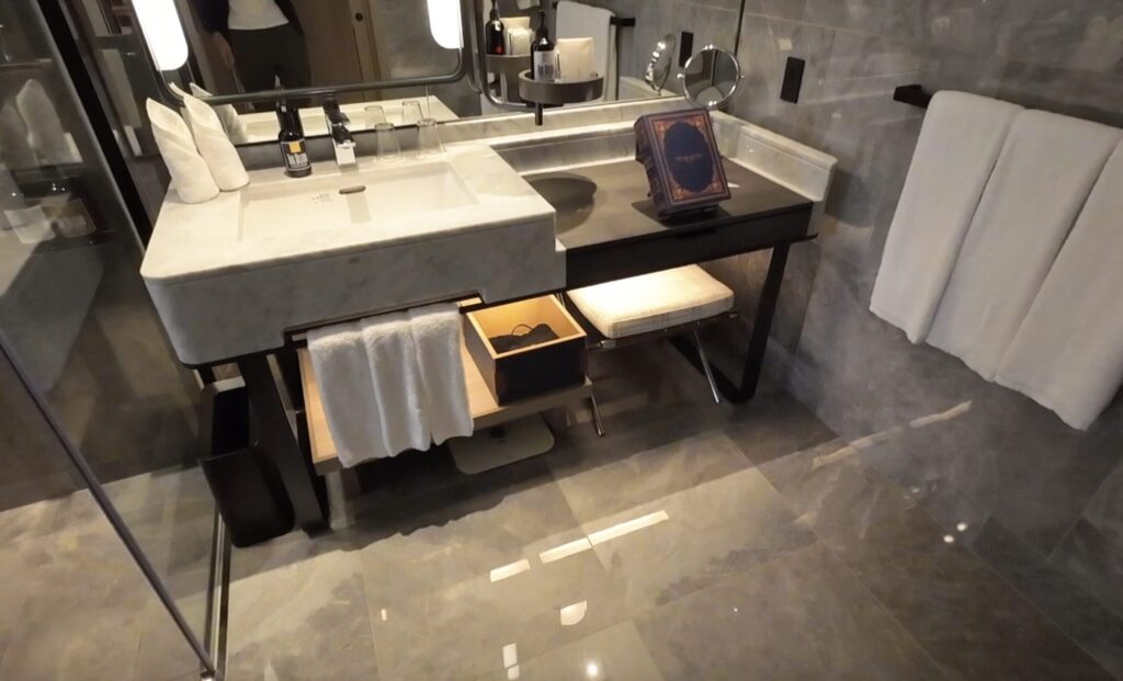 座席も付いているので、朝もゆっくり準備ができますね。