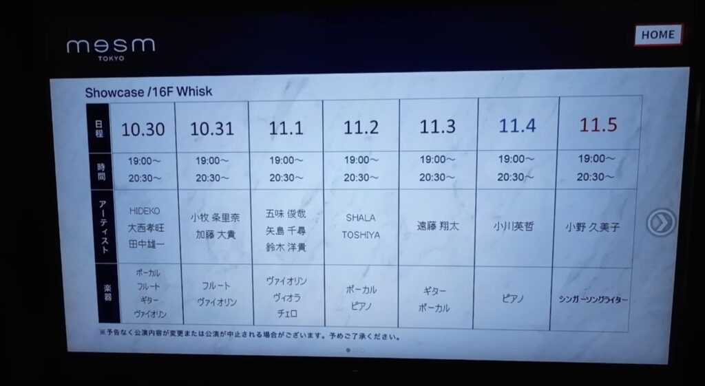 メズム東京では毎日演奏会を実施しています。