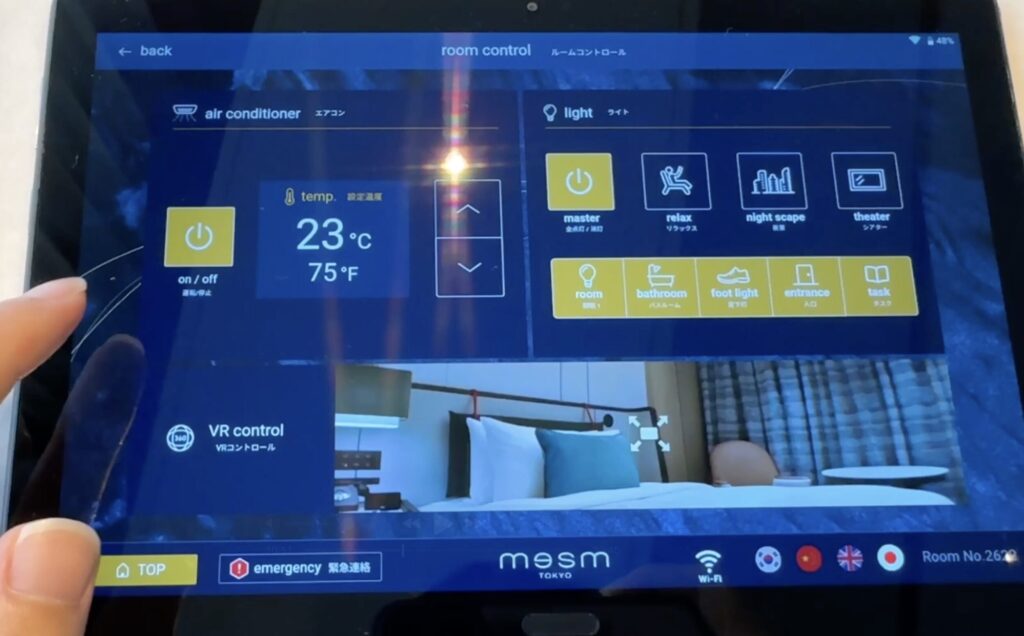 タブレット上で部屋の照明や温度調整をすることが可能です。