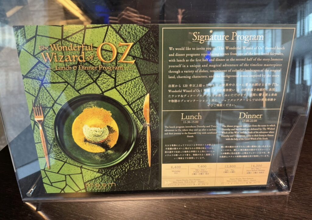プログラムも置かれており、料理に合わせたストーリーが描かれていました。