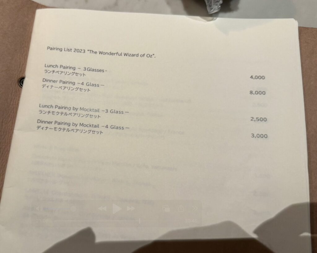 料理に合わせてドリンクを提供するペアリングセットもありました。