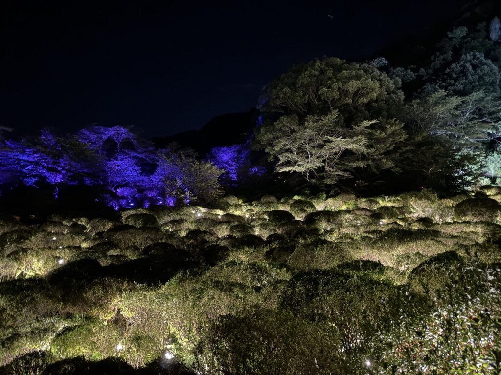 夜の時間帯には併設する御船山楽園をライトアップしています。