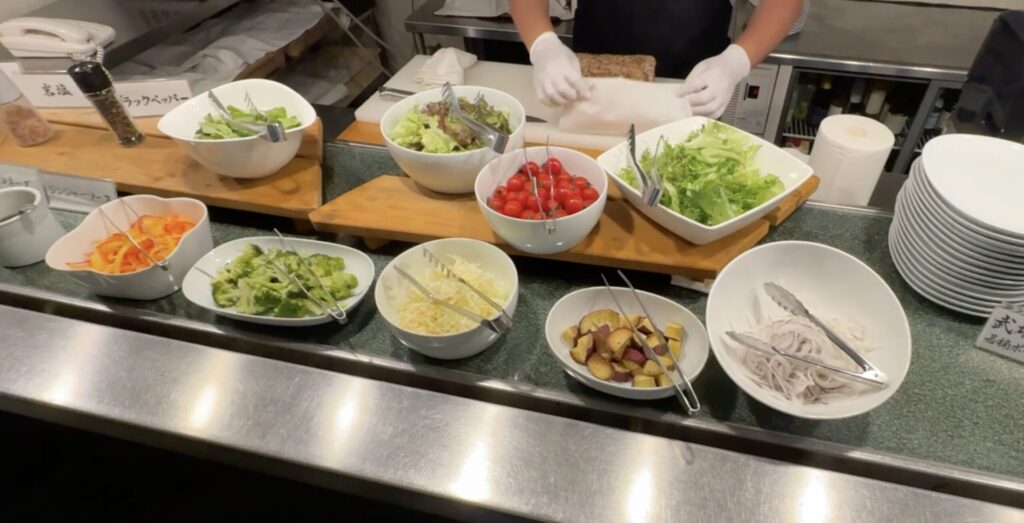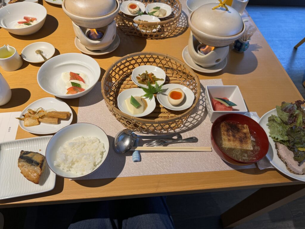 朝食はメインが御膳で、ドリンクやサラダなどはビュッフェ形式でした。