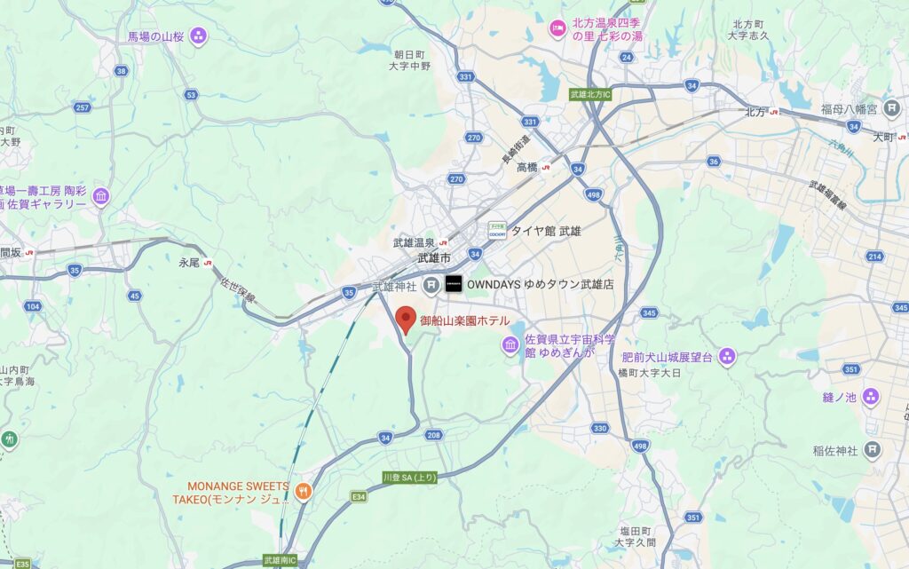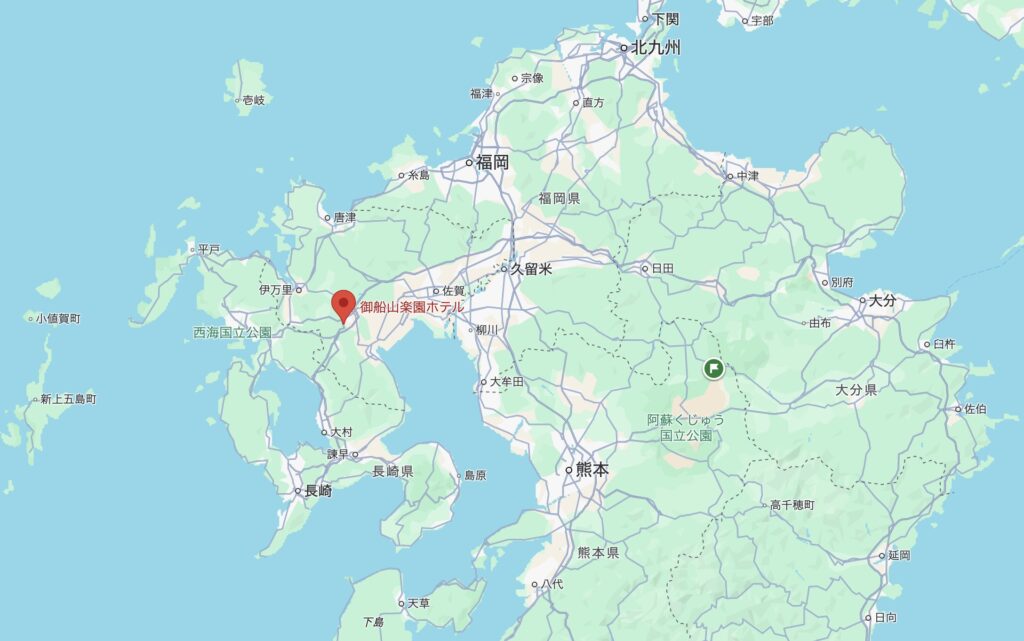 今回の御船山楽園ホテルは佐賀県の武雄温泉駅にあります。