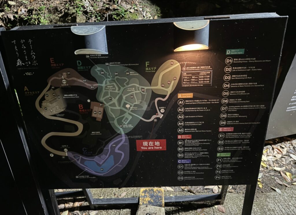 エリアには番号が振られた作品がありますが、作品案内の看板などはないので、自分たちで見つける必要があります。