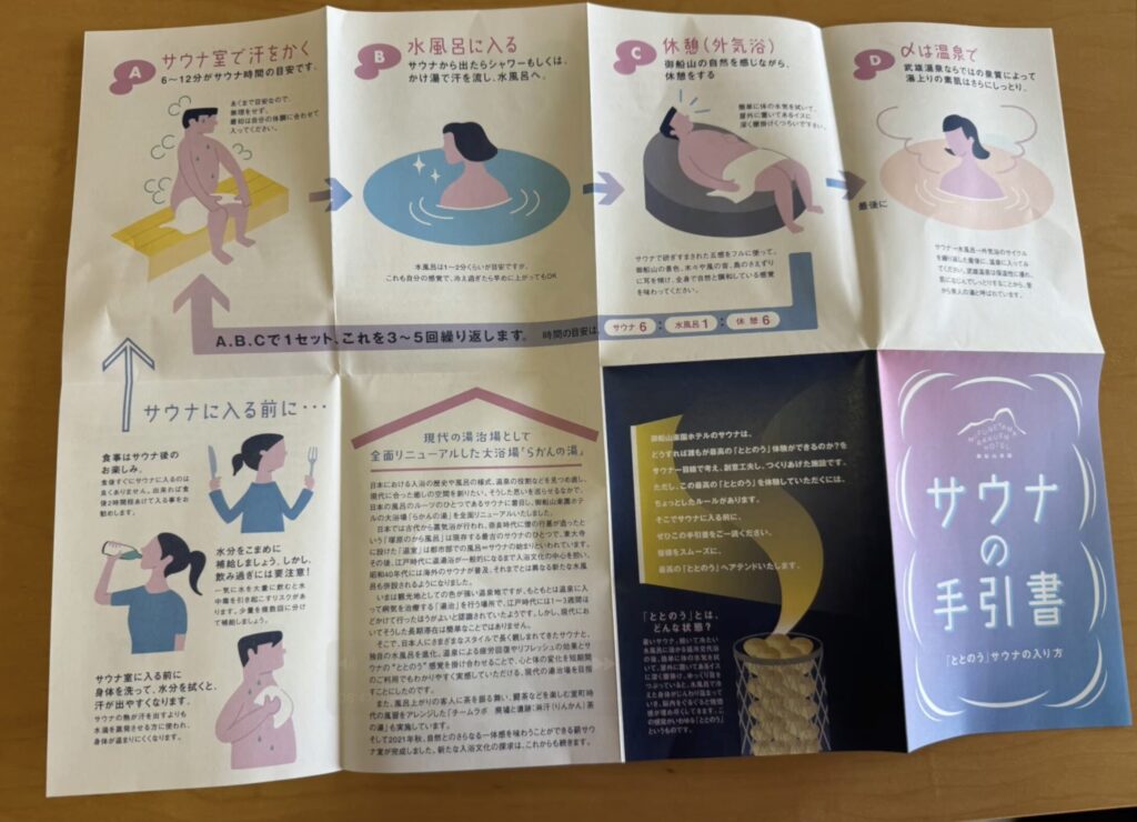 サウナが充実しているので、どのように入るといいのか記載がありました。