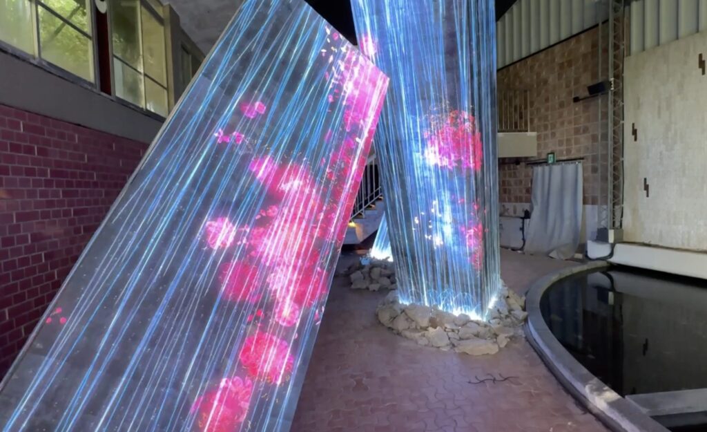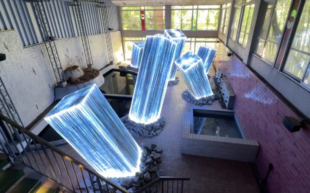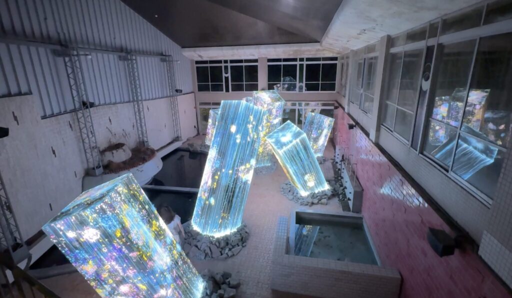 別の場所では、以前浴場として使っていた場所にオブジェを置いて、ライトアップしていました。