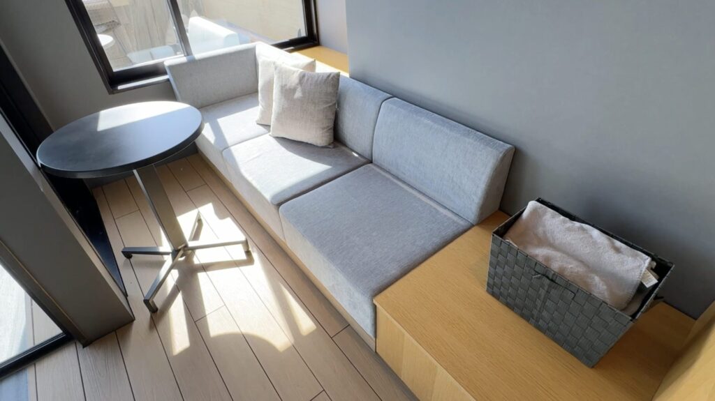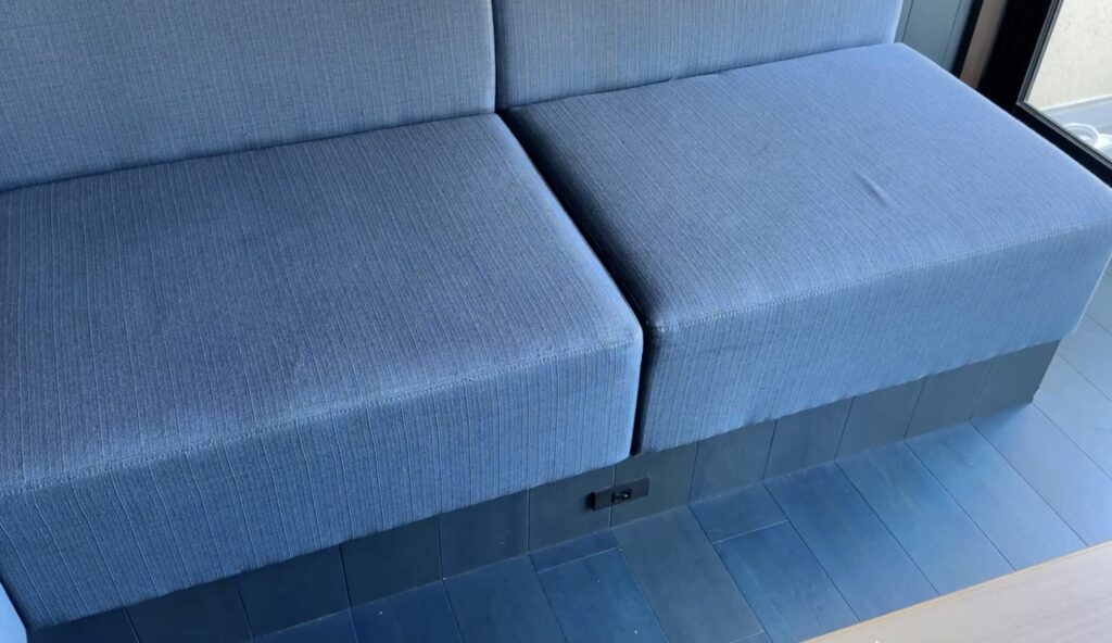 ソファーの下にはコンセントもあり、充電できるようになっていました。