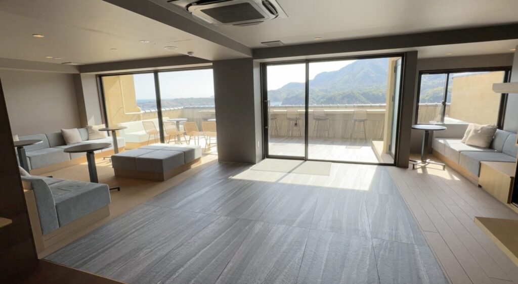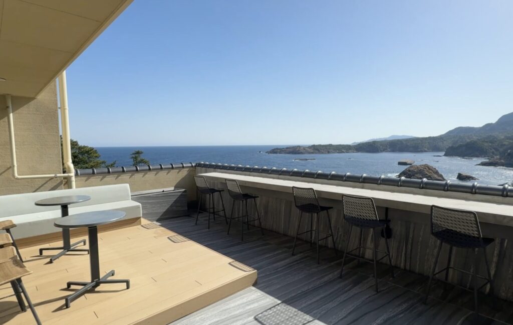 テラスからは外を見れるようになっており、海岸沿いを一望することができます。
