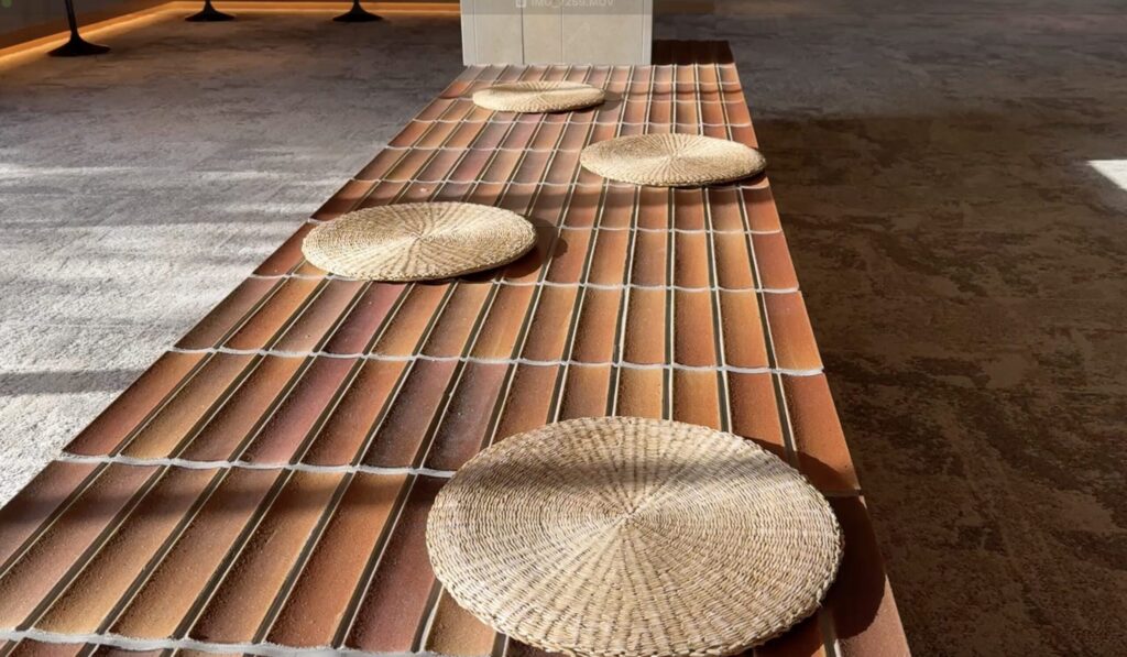 ベンチは、石見地方の特産品、石州瓦を製造している窯で作成しているそうです。